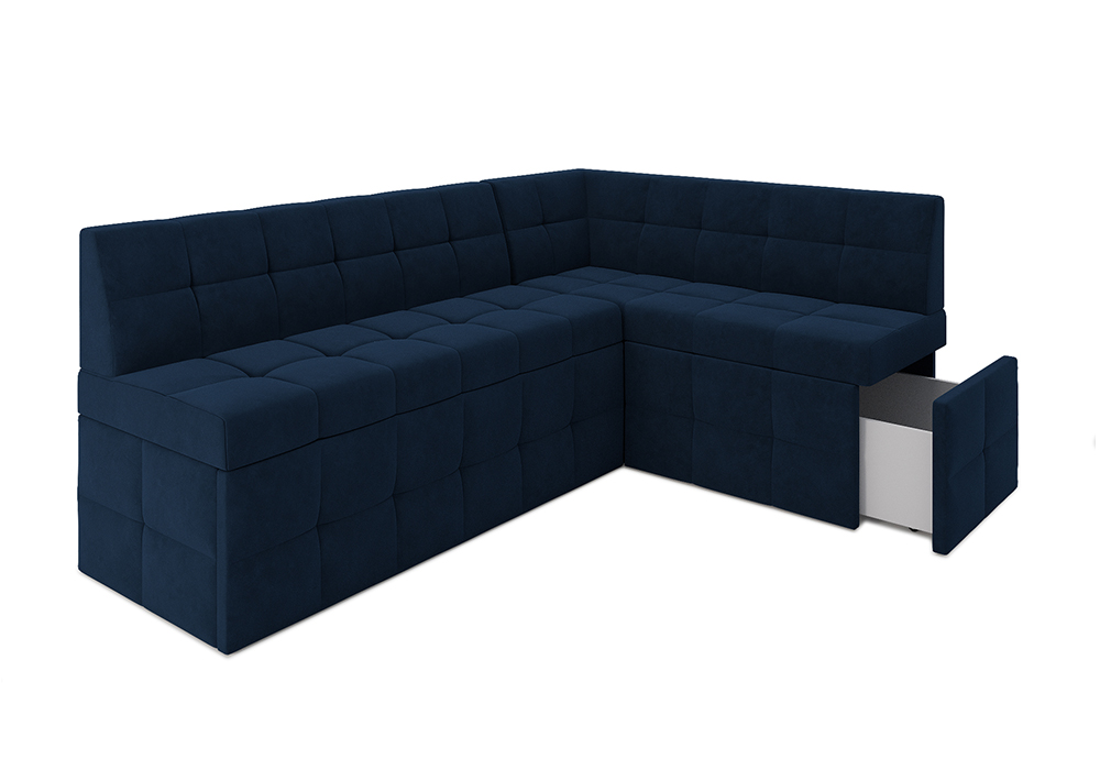 —Кухонный угловой диван дельфин Атлантис велюр темно-синий