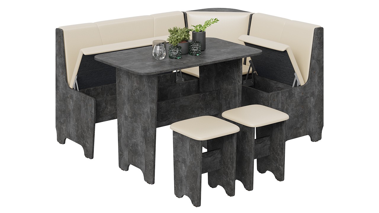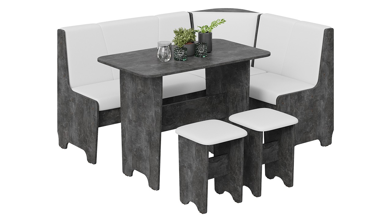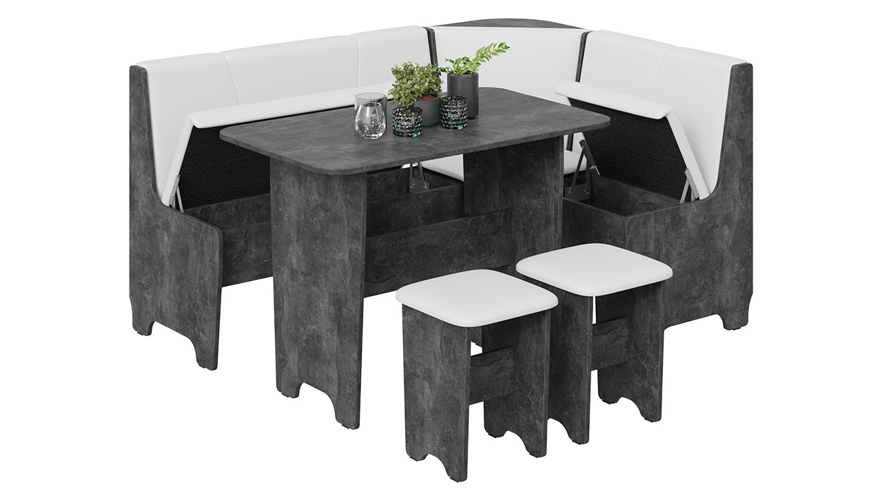 • Обеденная зона "Техас" состоит из удобной угловой скамьи, практичного стола и компактных табуретов.